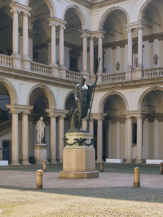 Napoleon as Mars the Peacemaker by Antonio Canova at the Pinacoteca di Brera; The Kiss by Francesco Hayez inside the museum (Luigi Fiano)