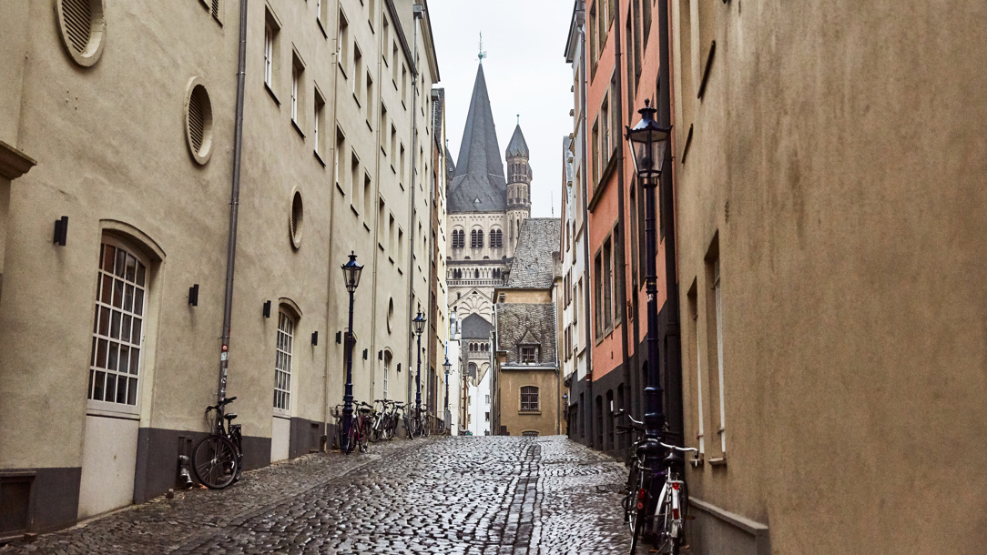 The classic Cologne view is from the side of the Hohenzollern Bridge opposite the Dom, from where you can watch the sun light up its twin spires and the shimmering Rhine in the foreground. But a very different perspective can be found at the corner of Markmannsgasse and Auf dem Rothenberg, from where you can travel back in time with a view onto the gorgeous Great St Martin Church and a slew of other historical buildings, some of which date back a thousand years or more.