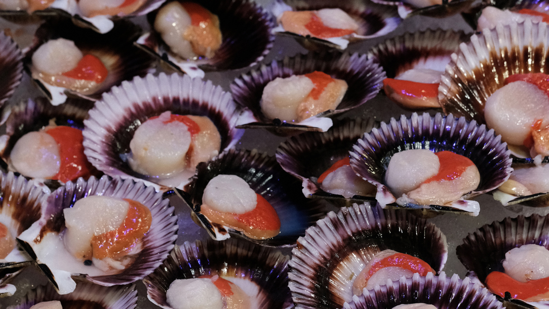 Fresh scallops at La Recova market in Santa Cruz