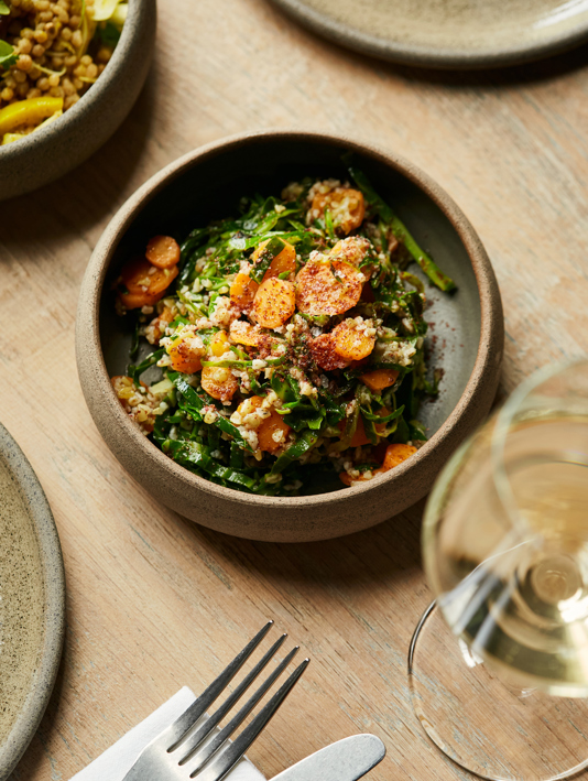 Hyper-seasonal, simple coal-cooking – what more could you ask for? Tucked away behind the ever-busy Pimlico Road, Wildflowers, which opened last year, is a warm and already well-honed escape from the outside hustle, with interiors you’ll be reluctant to leave behind (it’s not difficult to tell this is the brainchild of a chef and an interior designer – so hats off to Aaron Potter and interior Laura Hart, respectively). British-grown flowers dot sustainably vintage, dark wood tables, while big windows are dressed in rustic curtains and brick walls with pleasing sconces. Live, fiery cooking will catch your eye in the downstairs restaurant (where the moules farcies, drenched in garlic butter, are already shaping up to be a signature). Dishes are uncomplicated, and yet you’ll have a fun time discussing their wizardry in the upstairs wine bar, where the restaurant’s own wine (plus a very decent white peach sgroppino cocktail) can be enjoyed.