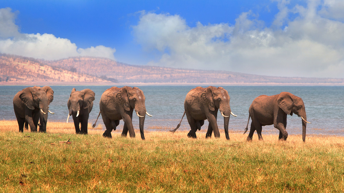 Elephants on parade by Lake Kariba, Zimbabwe (Getty)