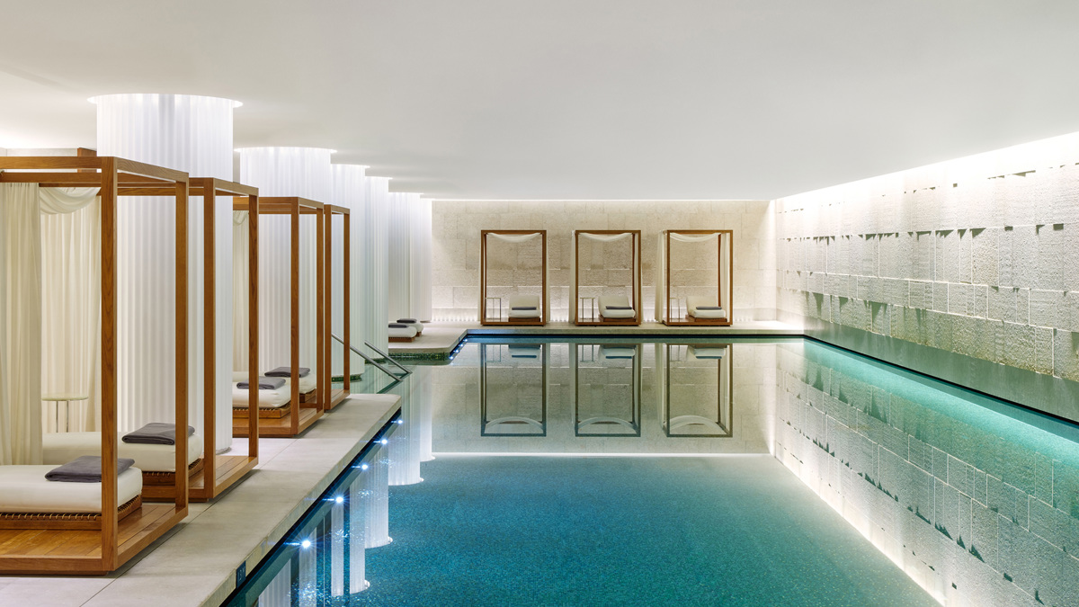 Set foot in this marble clad, chandelier-filled oasis and you’ll suddenly be compelled to tuck in your core and throw those shoulders back. Inside this building, which used to be the headquarters of the Ministry of Defence, you’ll find the essence of glamour, with gleaming floors, stately columns and soothing neutral tones in every direction, brightened by pops of colour from the many exquisite floral centrepieces. This oh-so-sleek theme continues into the rooms, where dramatic abstract paintings contrast with muted soft furnishings, beds that almost span the width of the room, and bookshelves stacked with Phaidon’s finest. The spa is where things dial up a notch, set over four floors, including a glossy black thermal floor that’s home to an indoor swimming pool, an enormous amphitheatre-style sauna, heated marble loungers and a vitality pool fitted with a host of bracing water jets. Night on the town in store? Revive dull skin with the Instant Glow Facial from anti-ageing guru Dr Barbara Sturm.