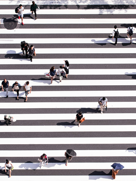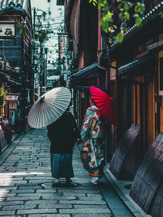 The famous Shibuya Crossing in Tokyo (Ryoji Iwata); a historic alleyway in Kyoto (Andre Benz)