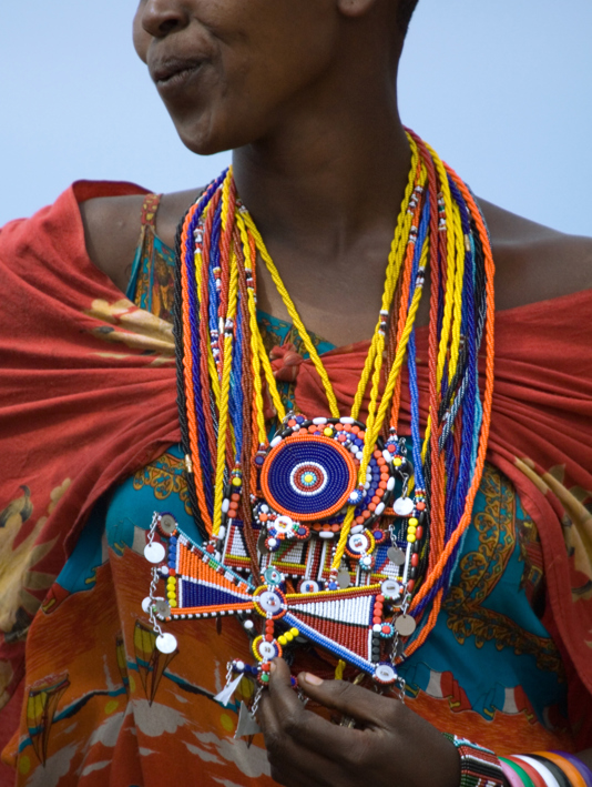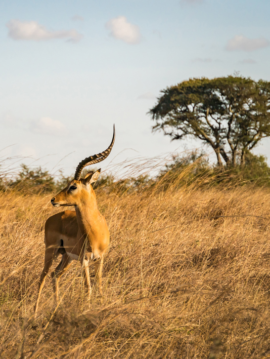 Traditional Maasai Mara jewellery; a male impala in the wild
