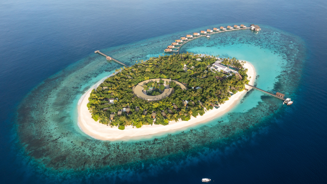 This five-star private island retreat in northern Raa Atoll – a scenic 45-minute seaplane ride from Malé – is proof that blending in isn’t always a bad thing. Set across 11.2 hectares of dense tropical canopies (imagine banyan, sea hibiscus and almond trees), its 45 beachfront villas and 36 overwater villas are just steps from the sparkling shore and look on to a tranquil turquoise lagoon, where you may be lucky enough to spot manta rays, dolphins and turtles.