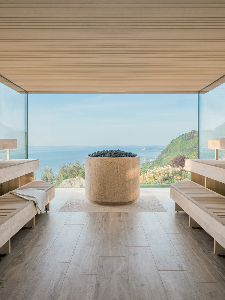 Panoramic Finnish sauna at Lefay Resort and Spa