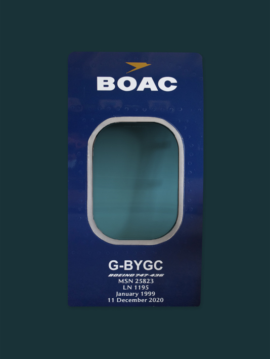 I started collecting British Airways memorabilia about five years ago when I came across Plane Reclaimers. From then on, I was addicted. It started off with small things such as skin cuts (10cm squares of fuselage skin from my favourite aircraft) then moved up to crew seats. Then I progressed to whole window cuts of various planes – mainly British Airways’ Boeing 747s, my favourite aircraft – one of which I have in the form of a cool wall clock. What can I say? It’s a very addictive hobby!