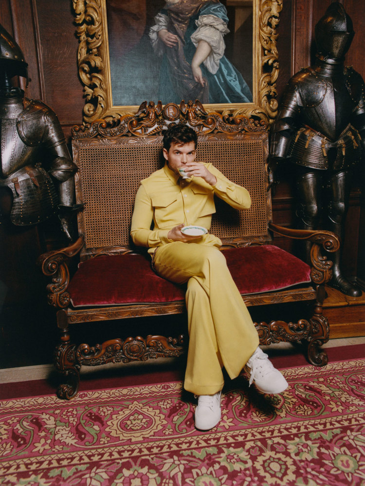 As for moving firmly into the spotlight, he credits co-romantic lead Nicola Coughlan – who plays Penelope Featherington – for making the ten-month shoot as joyful as ever. “We’re very understanding of each other and how each other works, which is the benefit of having worked together for so long,” says Newton. “We’d always get ready in the makeup trailer together so we’d be sharing playlists.” Beyoncé, The 1975 and Shania Twain’s ‘Man I Feel Like A Woman’ proved popular on their musical rotation, and these morning singalongs helped further cement their camaraderie and comfortability, especially when embarking on the steamier requirements of the series. “Looking back, it was a breeze,” he recalls of the intimate scenes. “She’s my friend, so we just giggle about it. There are those moments when you come out of your body and go, ‘Oh, millions of people will see this.’ But then I’ve been an actor for many years now. People have seen my performance on stage and other shows, so you feel confident.”