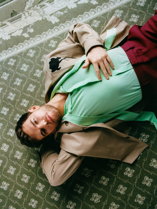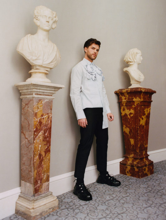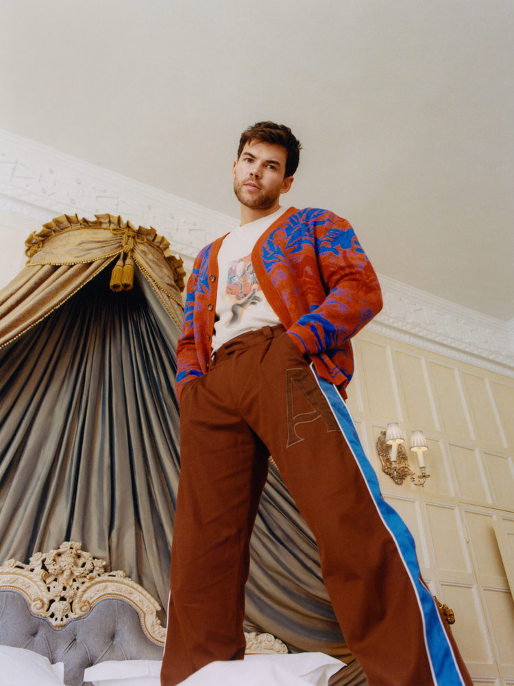 He celebrated a significant life moment during the latest shoot by turning 30, and the timing revealed “weird parallels” between himself and Colin, a young man who once lacked purpose now finding his feet in the world. “It feels really ‘actory’ but I always relate to the role that I am in and I felt like I was growing up at the same time as Colin,” he says. “I started off the season still feeling like the previous version – you know, fake it till you make it. But once we get into episode three, we’re starting to change. Colin comes back from his travels and is navigating his way through the ‘ton’, which is nothing compared to travelling to 16 cities in Europe, meeting new people and having that experience.”