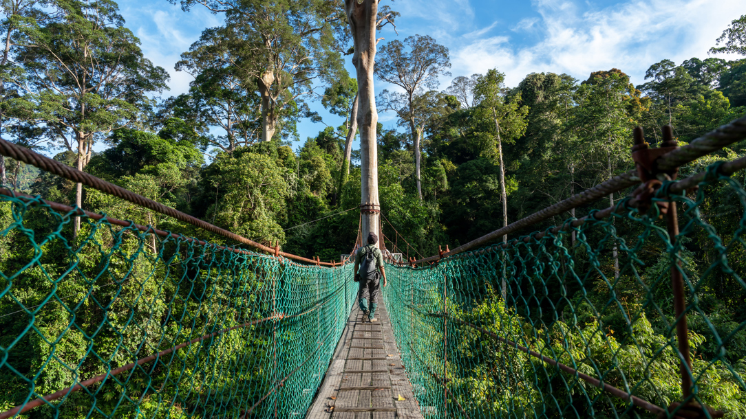 A tree-top canopy walk in protected rainforest near Lahad Datu