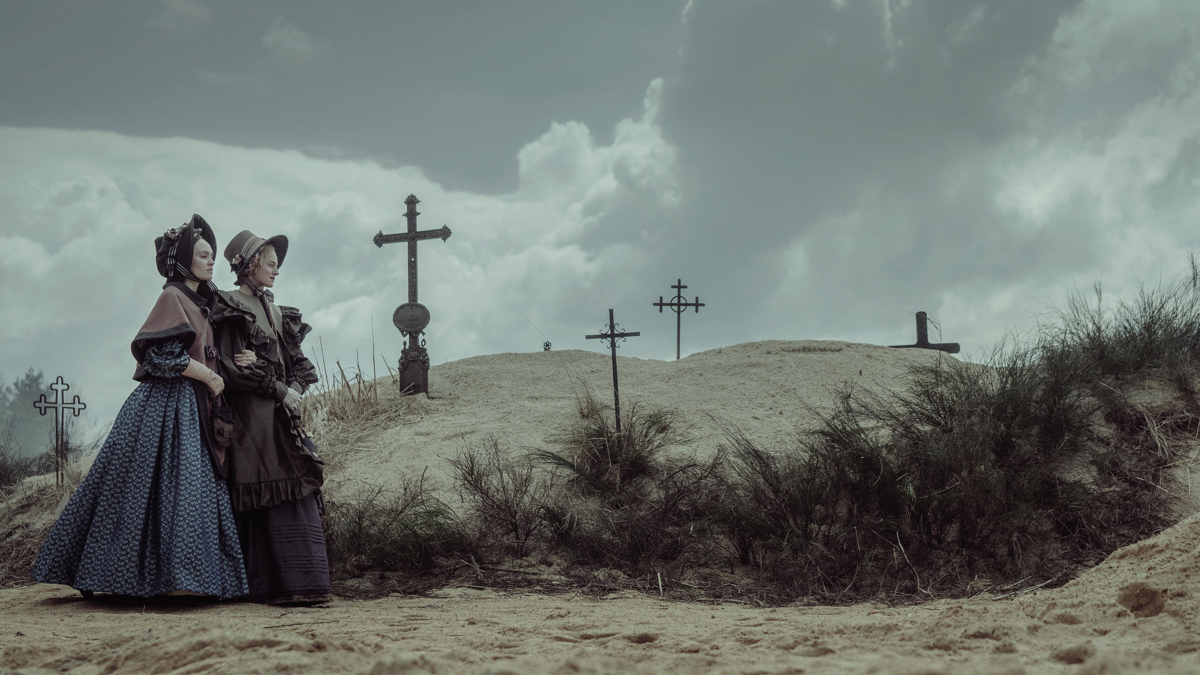 Lily-Rose Depp and Emma Corrin take a gentle stroll in Nosferatu (Aidan Monaghan/Focus Features)