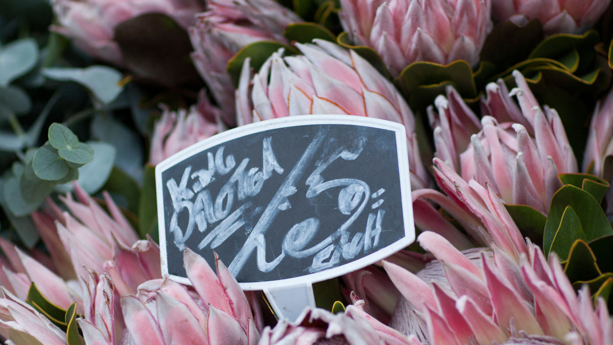 King proteas on sale at Columbia Road Flower Market