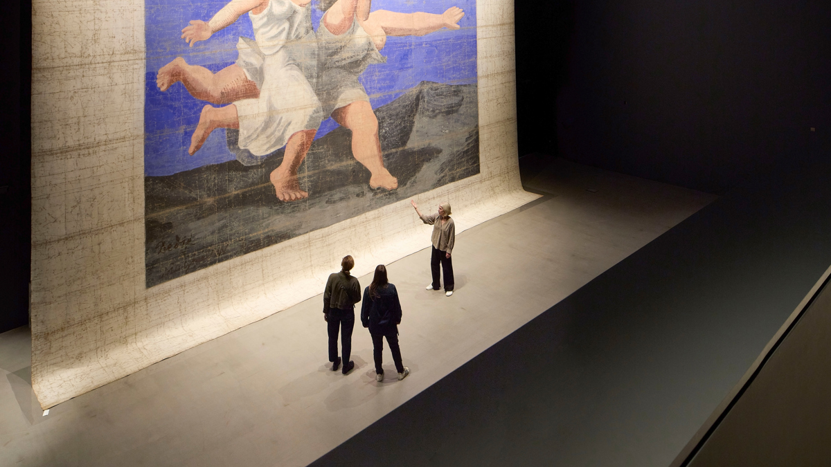 Visitors admire Picasso’s stage cloth for the ballet Le Train Bleu at the V&A East Storehouse (Hufton Crow)