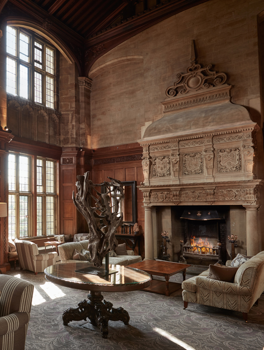 Autumn comes to Bovey Castle; its magical Cathedral Room. Opening image: Bovey Castle from above