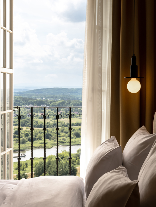 Room with a view at Zinar Castle; the castle sits on a quiet forest hilltop overlooking the Vistula River