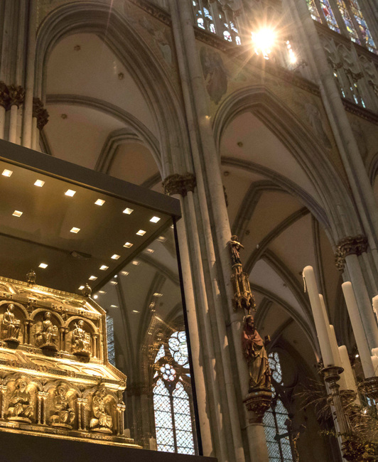 The classic Cologne view is from the side of the Hohenzollern Bridge opposite the Dom, from where you can watch the sun light up its twin spires and the shimmering Rhine in the foreground. But a very different perspective can be found at the corner of Markmannsgasse and Auf dem Rothenberg, from where you can travel back in time with a view onto the gorgeous Great St Martin Church and a slew of other historical buildings, some of which date back a thousand years or more.