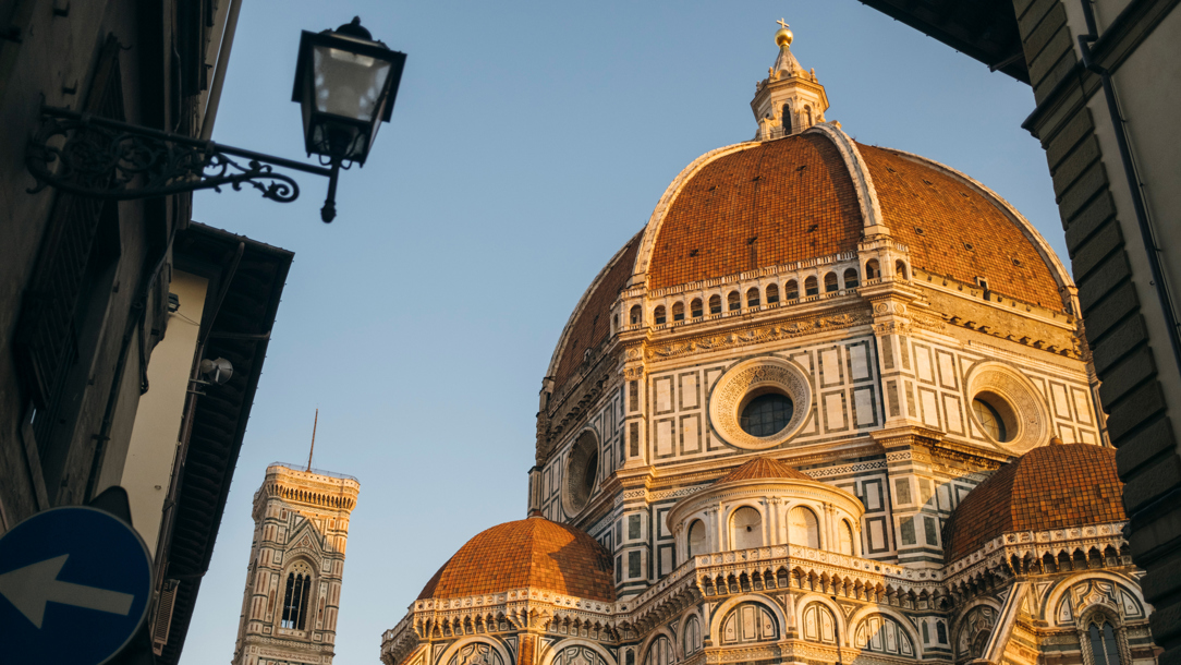 Brunelleschi’s 15th-century Duomo (above) looms large as you fly into Florence’s Peretola airport. It’s hard to get a sense of its scale from the ground – this is the largest masonry dome ever constructed to this day – but from above you can see just how much it dwarfs the rest of the city. As you fly closer, you’ll see the Arno river snaking through the city centre, with the rolling Tuscan countryside and the foothills of the Apennine mountains in the distance.