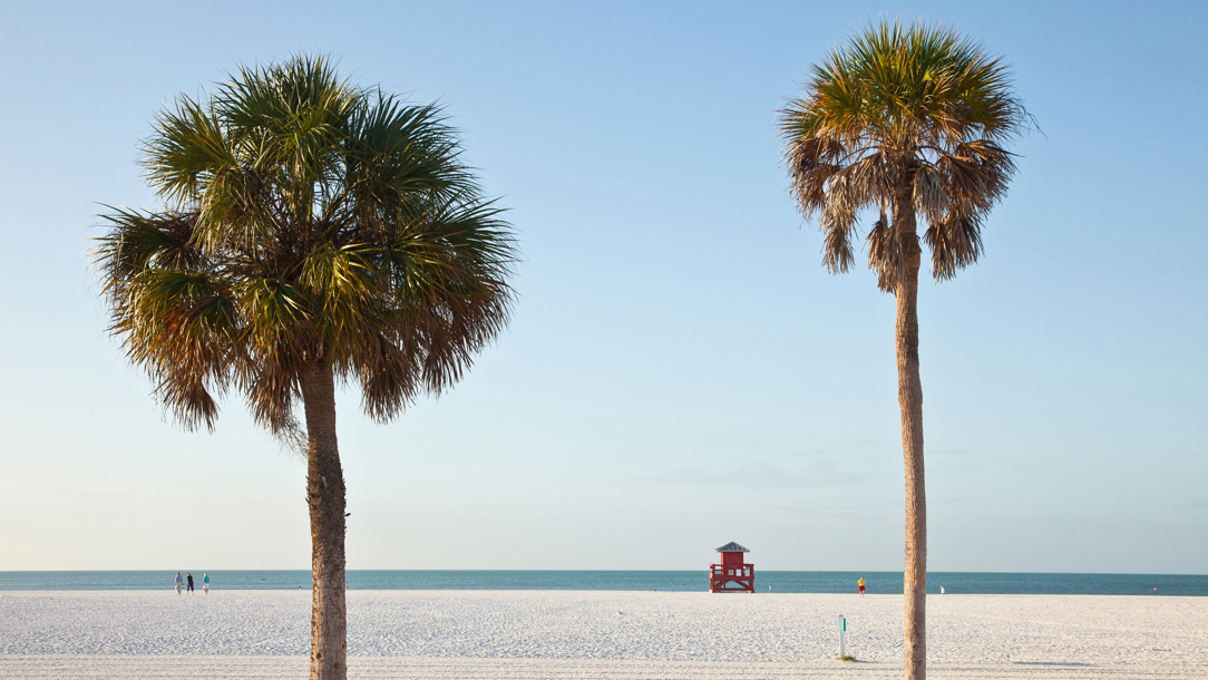 There’s stiff competition, but one of Florida’s best beaches is Siesta Key Beach, a stretch of dazzling, Caribbean-esque white sand that gets its hue from its high quartz content.