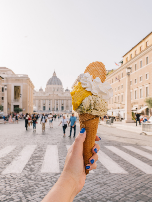 Gelato done right by the Vatican museum; monument to Giuseppe Garibaldi at Janiculum Hill