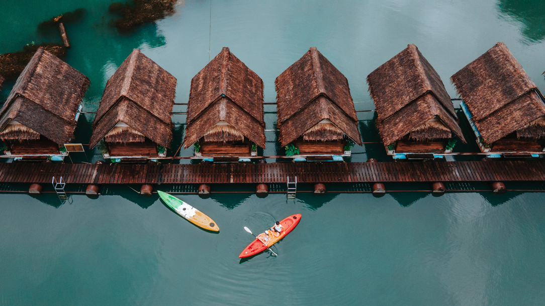 Floating huts on Cheo Lan Lake in Khao Sok National Park