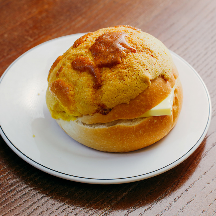 Pineapple buns are iconic. They’re just a classic Hong Kong food – kids grow up eating them here. They’re sweet buns that are soft and fluffy inside and they have this delicious crumbly crust on top. I love the buns at Cheung Hing Coffee Shop in Happy Valley because they have a fried egg inside. You’ve got lots of butter inside the bun, and then this stringy omelette right in the centre. I just love them – the egg is always perfectly fried.