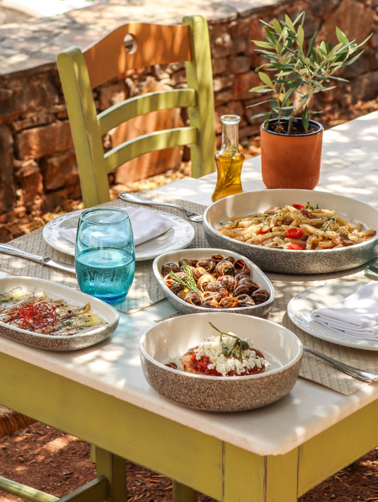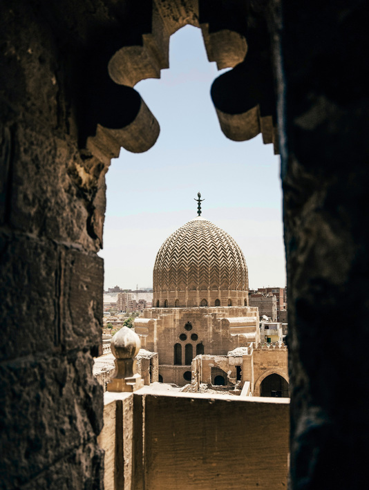 Mausoleum in the City of the Dead, Cairo (Ruben Hanssen/Unsplash); alfresco dining in a Greek taverna (Getty)