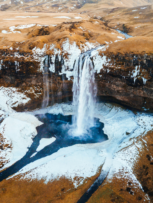 A Lamborghini Espada; Seljalandsfoss waterfall in South Iceland (Robert Bye)