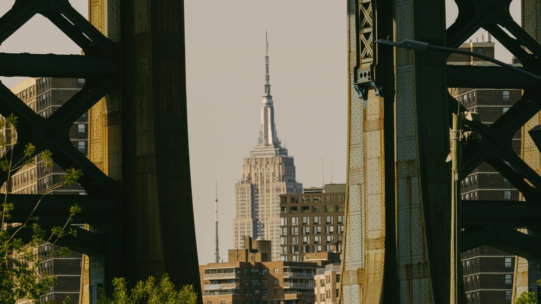 The Empire State Building framed by the pylons of Manhattan Bridge. Opening image: the New York City skyline seen from the Top of the Rock (Nicolas Quiniou)