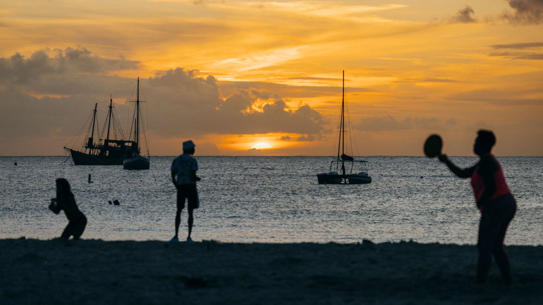 The sun sets over a Barbados beach