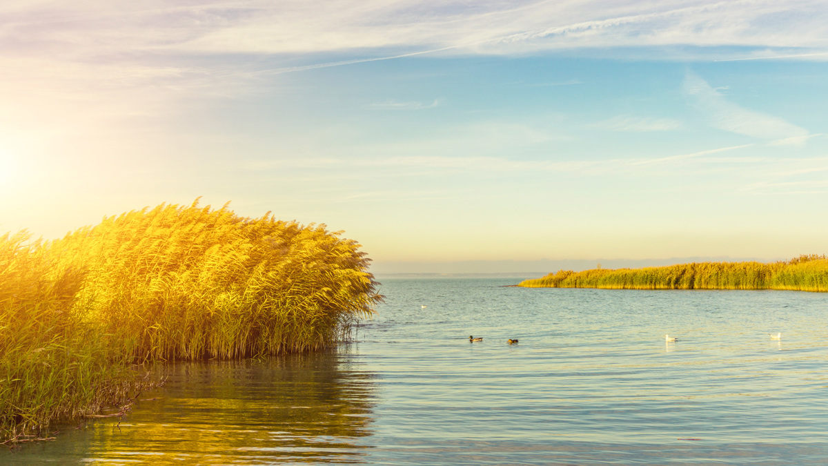 Ducks glide across a calm Lake Balaton (Getty)