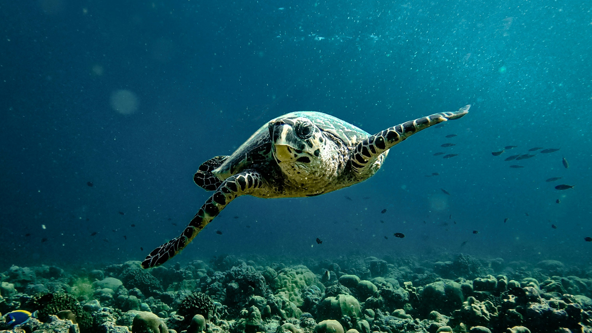 A hawksbill sea turtle in the Maldives (Rayyu Maldives)