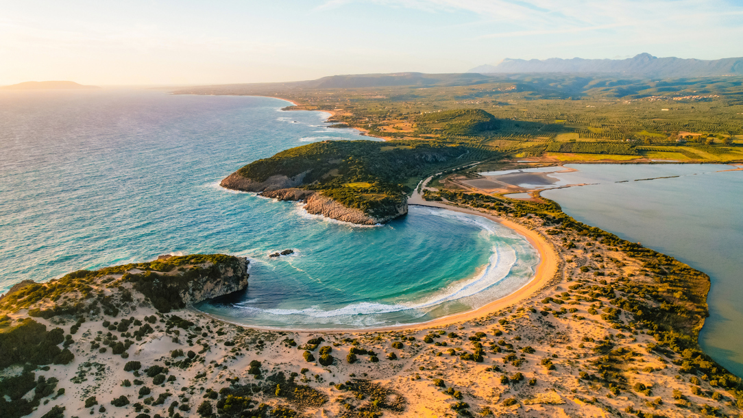 Horseshoe-shaped Voidokilia Beach in Messinia