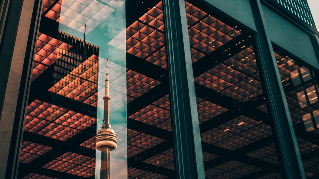 The CN Tower reflected in the windows of the Toronto-Dominion Centre (Yeshi Kangrang)