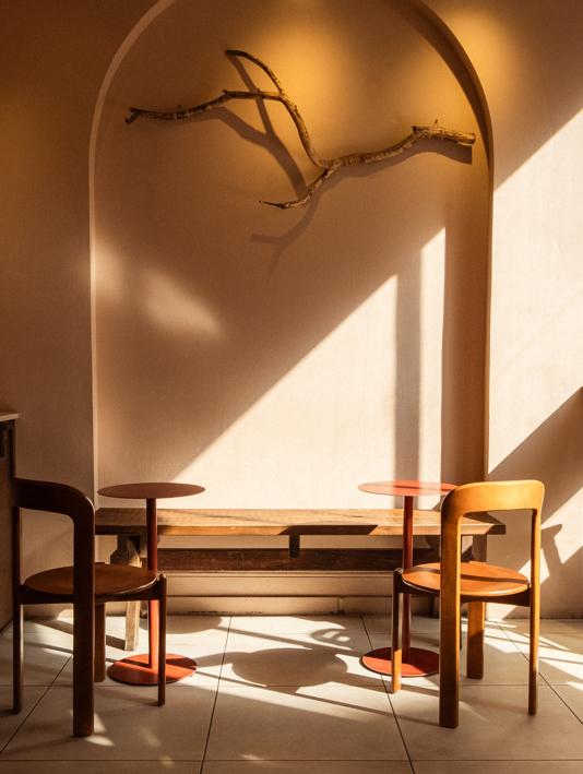 The minimalist Mexican interior of Aguamiel; the churrería’s cinnamon horchata cold brew