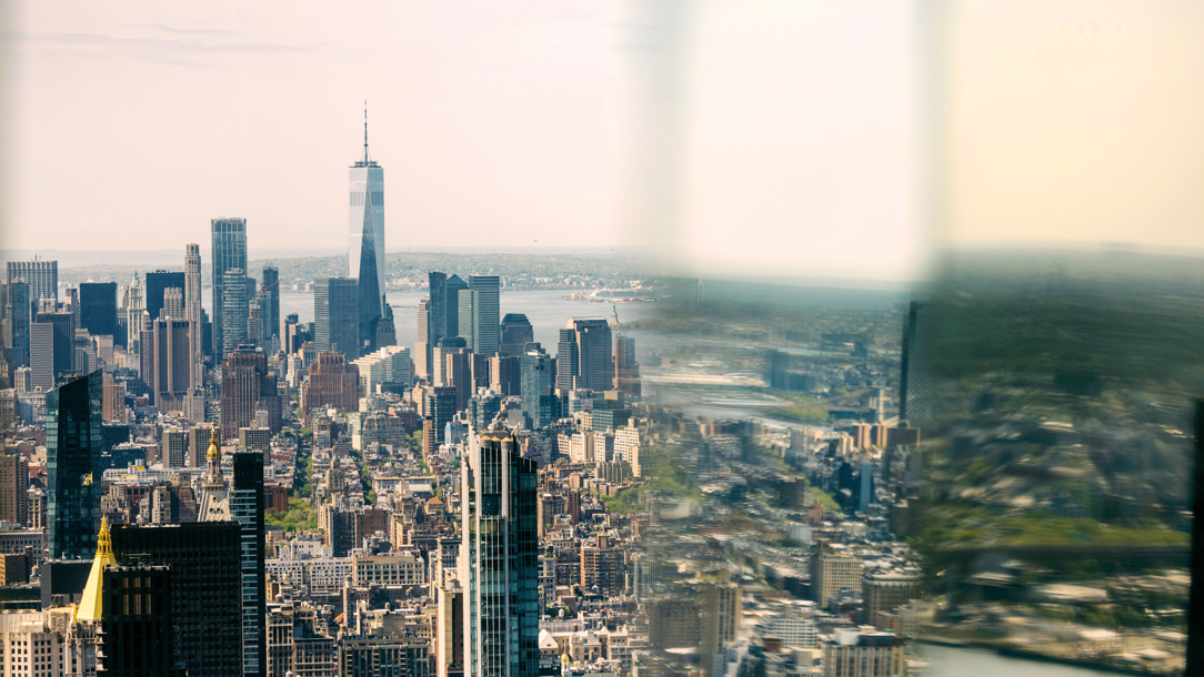 The glorious Manhattan skyline viewed from an observation deck