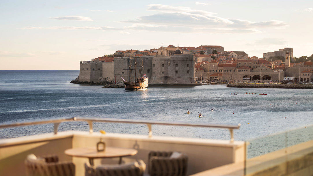 The terrace of the Hotel Excelsior delivers views of Dubrovnik’s historic Old Town