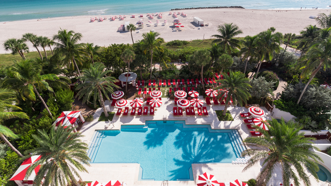 In the immortal words of Will Smith, “We’re goin’ to Miami” – for Faena Hotel Miami Beach. Art, fantasy, reality and retro vibes blur at this multihyphenate seaside magnet in the heart of Mid Beach. As enticing as Faena Pool is, unfurl your towel at even better Faena Playa, just steps from the Mammoth Garden (wave hello to Damien Hirst’s gilded woolly mammoth skeleton, too). Lounge on a chaise longue or stay cool beneath candy-striped sun umbrellas featuring Faena’s signature strawberries-and-cream colour scheme. Obliging beach butlers will cater to your every whim: tropical cocktail, rainbow-bright salad or creamy gelato, perhaps?