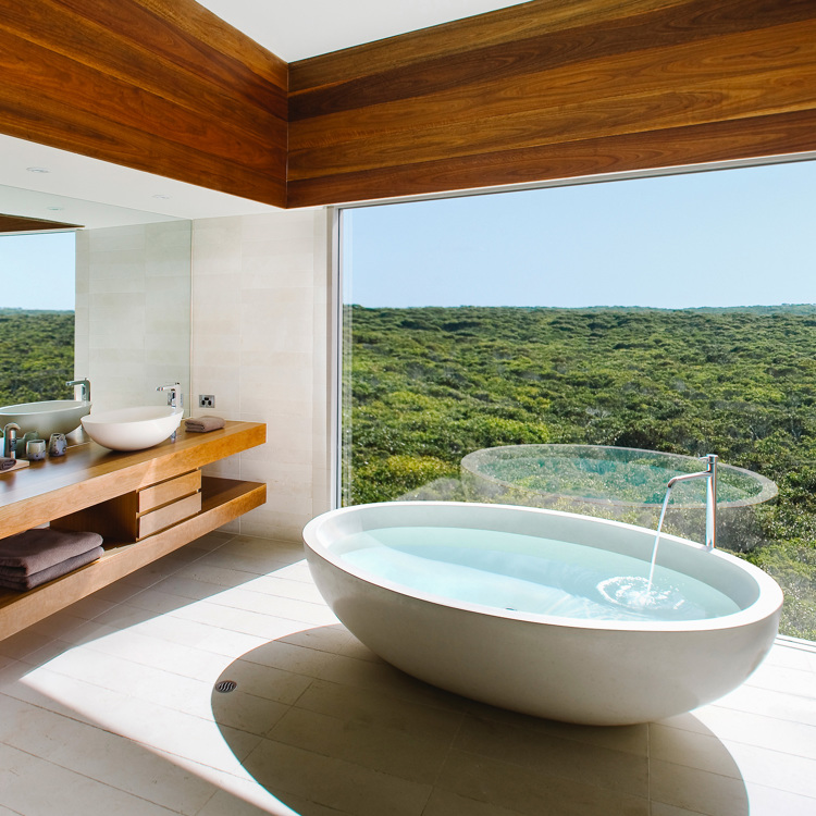 For nature-lovers looking for a true back-to-nature hideaway, this remote resort ticks all boxes. Check into the Osprey Pavilion suite where décor includes a sleek sunken lounge, elegant furnishings and mesmerising views of the coastal wilderness. In the bathroom, enjoy the heated limestone floors before soaking in the hand-sculpted granite bath.