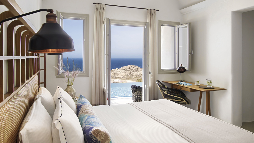 Santo Mine Oia Suites is immersed in serenity. Opening image: Santo Pure Oia Suites & Villas