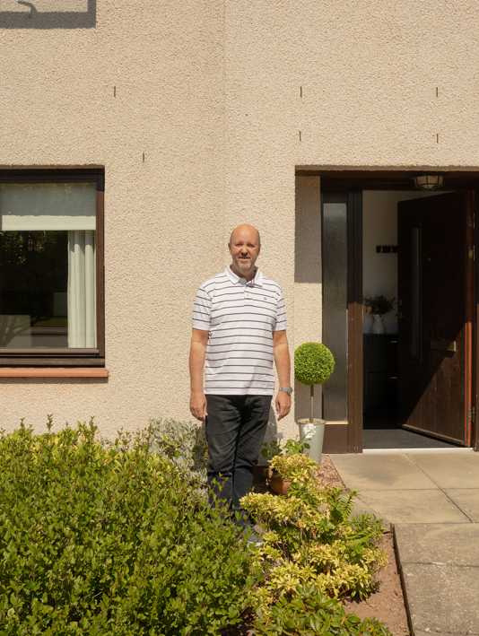 Gary McCombie in his garden in Stonehaven, south of Aberdeen; starting engine two. Opening image: McCombie prepares for ‘take-off’