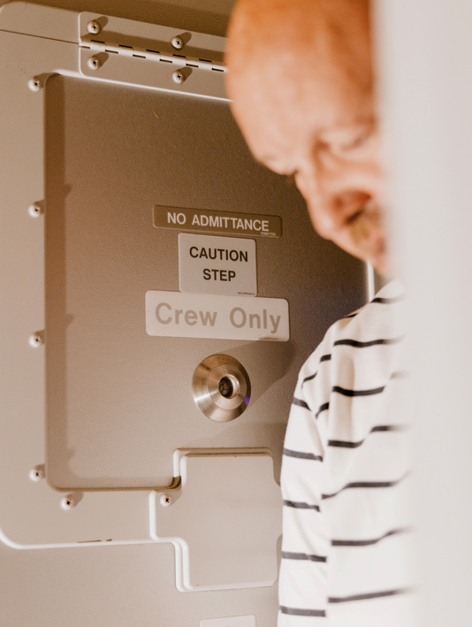 The flight deck door seen from the inside and outside