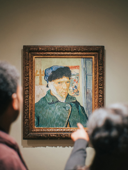 Vincent van Gogh’s Self-Portrait with Bandaged Ear at the Van Gogh Museum (Jean Carlo Emer); enjoying a canal cruise in Amsterdam