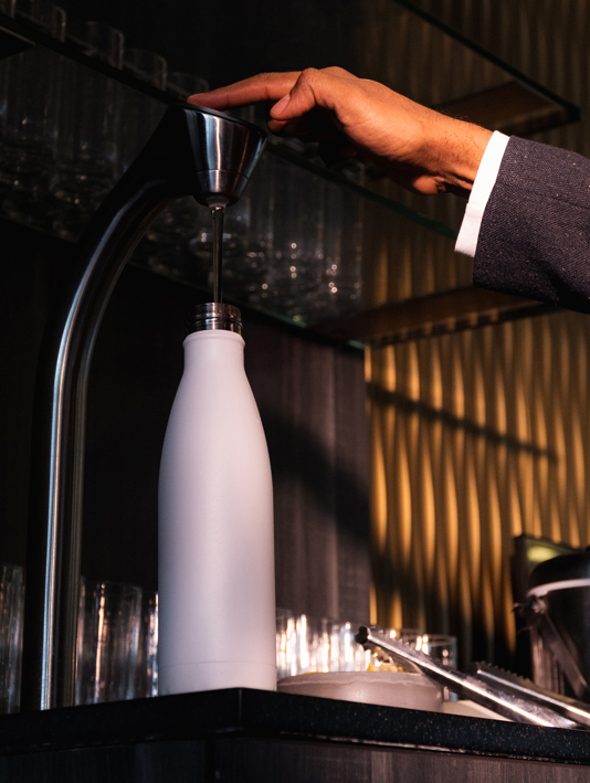 Refill your own water bottle at the airport; the refreshed Galleries Club Lounge at Heathrow T5B