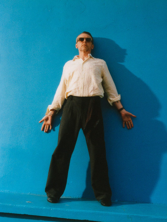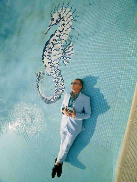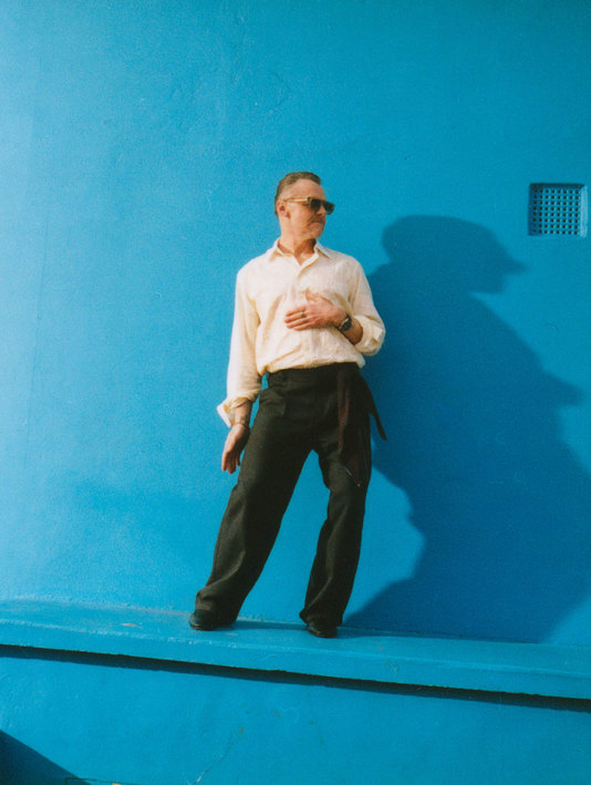 Peff wears Lanvin cotton embroidered shirt , £1,360; Oliver Spencer Orsman trousers, £229; Manolo Blahnik Truro loafers, £745; Bremont Supermarine 300m watch, £3,350; Cutler and Gross sunglasses, £415