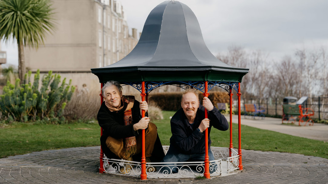 “There’s such affection for the series in Scotland,” says Cumming. This pair of lifelong friends, who met as students at Glasgow’s Royal Scottish Academy of Music and Drama, were reminded of that homegrown enthusiasm when they wrote their 2024 book Victor & Barry’s Kelvinside Compendium, celebrating the 40th anniversary of the beloved cabaret characters who directly influenced the creation of Steve and Sebastian.